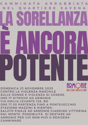 è un centro di ascolto, orientamento e accoglienza telefonica gestito dalle volontarie di Armonie e rivolto alle donne. Chiama il 375 6619400 il lunedì e mercoledì dalle 16 alle 19.