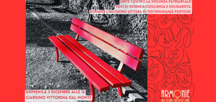 Unite contro la violenza patriarcale! Voci di donne:accoglienza e solidarietà. Durante l’incontro lettura di testimonianze poetiche. Domenica 3 dicembre alle 16.00 Giardino Vittorina Dal Monte, Via Emilia Levante 138