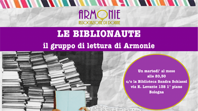 Biblionaute è il gruppo di lettura dell’associazione Armonie. Proponiamo un incontro ogni primo martedì del mese, durante il quale condividere esperienze di vita, emozioni, riflessioni, a partire dalla lettura di un libro scelto collettivamente. L’idea è di navigare nel mare della letteratura femminile e approdare su varie isole, spiagge, sponde e arcipelaghi a seconda dei desideri e delle possibilità, facendo della lettura un balsamo e una cura. Vogliamo che il gruppo le Biblionaute sia un momento di confronto e conoscenza reciproca, un’occasione per stare tra donne. Per info e iscrizioni: biblioteca.armonie@gmail.com Le Biblionaute sono pronte a ripartire nel fantastico viaggio...
