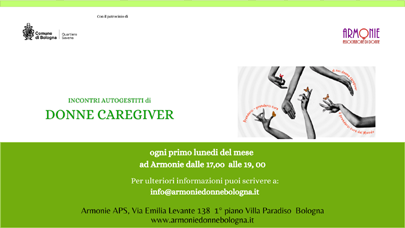 Da lunedì 6 ottobre 2025 dalle 17 alle 19 ogni primo lunedì del mese 1° incontro lunedì 6 ottobre 2025 ARMONIE CONTINUA IL PROGETTO DI SOSTEGNO ALLE DONNE CAREGIVER DEL TERRITORIO Da anni la nostra associazione sostiene le donne caregiver, che si occupano di familiari in condizioni di fragilità, accomunate dal carico emotivo e lavorative e che sovente vivono in condizioni di solitudine. A Febbraio 2024 grazie al contributo della Fondazione del Monte abbiamo attivato un progetto di sostegno col supporto di una psicoterapeuta. Le partecipanti hanno deciso di continuare gli incontri nel 2025 in modalità autogestita in...