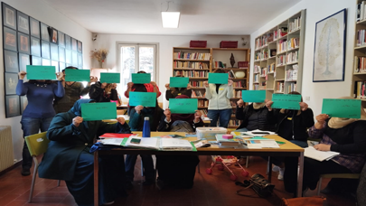 Lingua Abitata, corso di italiano per donne ad Armonie tutti i giovedì mattina dalle 10 alle 12 DICEMBRE 2024 Noi donne di Lingua Abitata ci ci siamo date appuntamento alla giardina e tutte insieme abbiamo preso l’autobus, destinazione: Il Museo della Musica di Bologna! Grazie a Laura e Melina – MIA Musei Inclusivi e Aperti che ci hanno guidato a scoprire le straordinarie collezioni custodite. Ci sono beni preziosi da ammirare in una sala che pare un incanto di fiori. E qui abbiamo realizzato il nostro personale segnalibro..” FEBBRAIO 2024