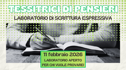 Tessitrici di Pensieri – Laboratorio di scrittura espressiva mercoledì 11 febbraio 2026 ore 18 LABORATORIO APERTO PER CHI VUOLE PROVARE! Il laboratorio di scrittura espressiva è uno spazio per rintracciare fili personali, cogliere sensazioni, emozioni e provare a sentirle e a nominarle. È spazio piacevole dove si è attente alla propria interiorità e nello stesso tempo, sostenute nell’incontro con l’altra. La conduttrice favorisce, in un piccolo gruppo, con stimoli letterari o visivi, l’emergere di ricordi, storie, intrecci, anche con le trame di altre, che si concretizzano in testi. Quest’anno prevediamo di ampliare gli stimoli a presenze di poetesse contemporanee e...