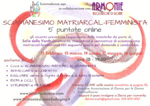 un’ora e mezza, fra l’esposizione teorica e una parte di condivisioni e domande, per approfondire il temo dello sciamanesimo matriarcal-femminista, cos’è, dove si colloca, come si fa, come ci fa diventare di nuovo riBelle dentro e fuori!