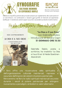 Presentazione del libro: “La Dea e il suo Eroe” con Gabriella Galzio. Introduzione di Sandra Capri