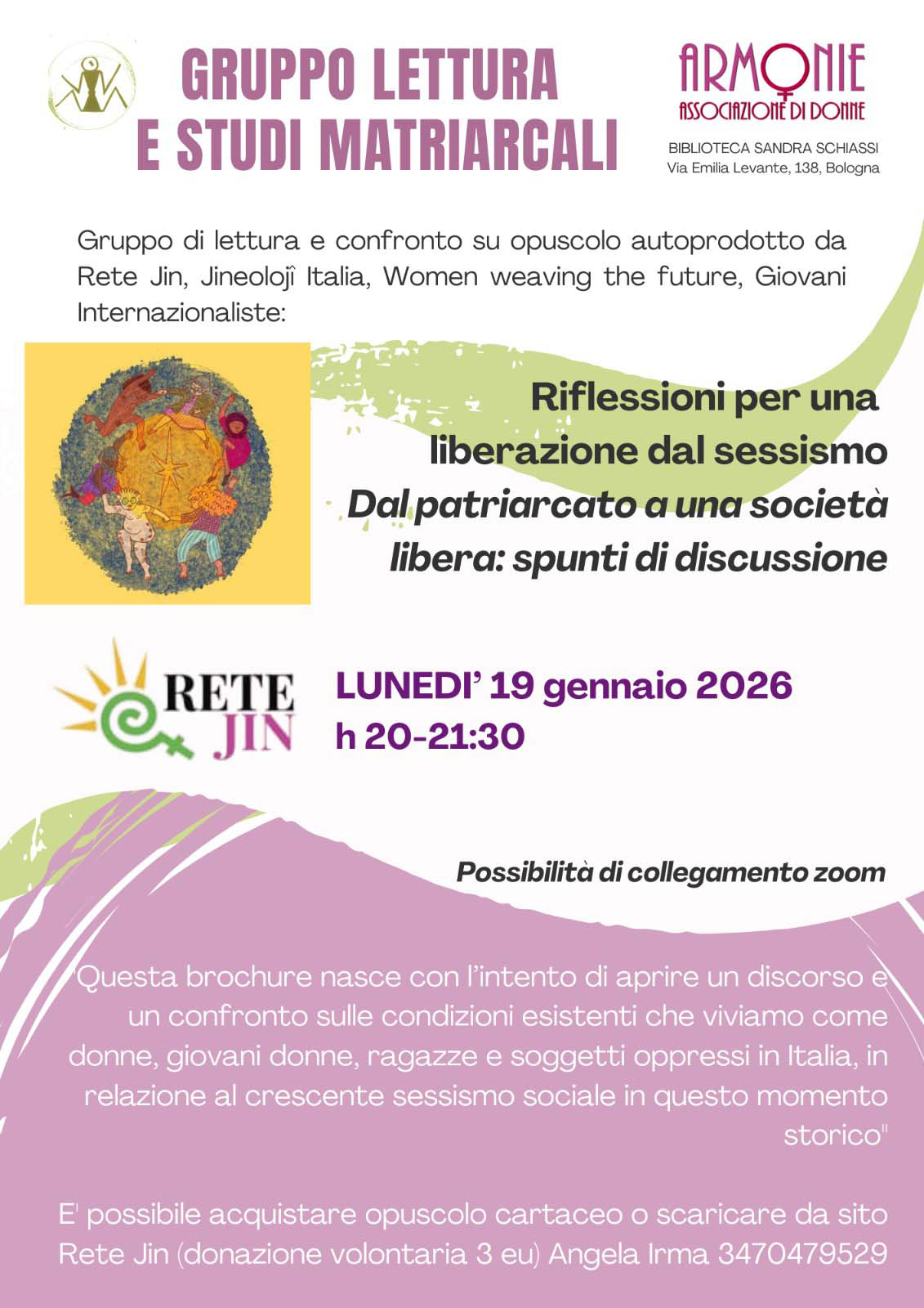 Per gennaio abbiamo deciso di fare la lettura di un opuscolo di attualità sul sessismo, autoprodotto da Rete Jin, Jineoloji, Giovani Internazionaliste.