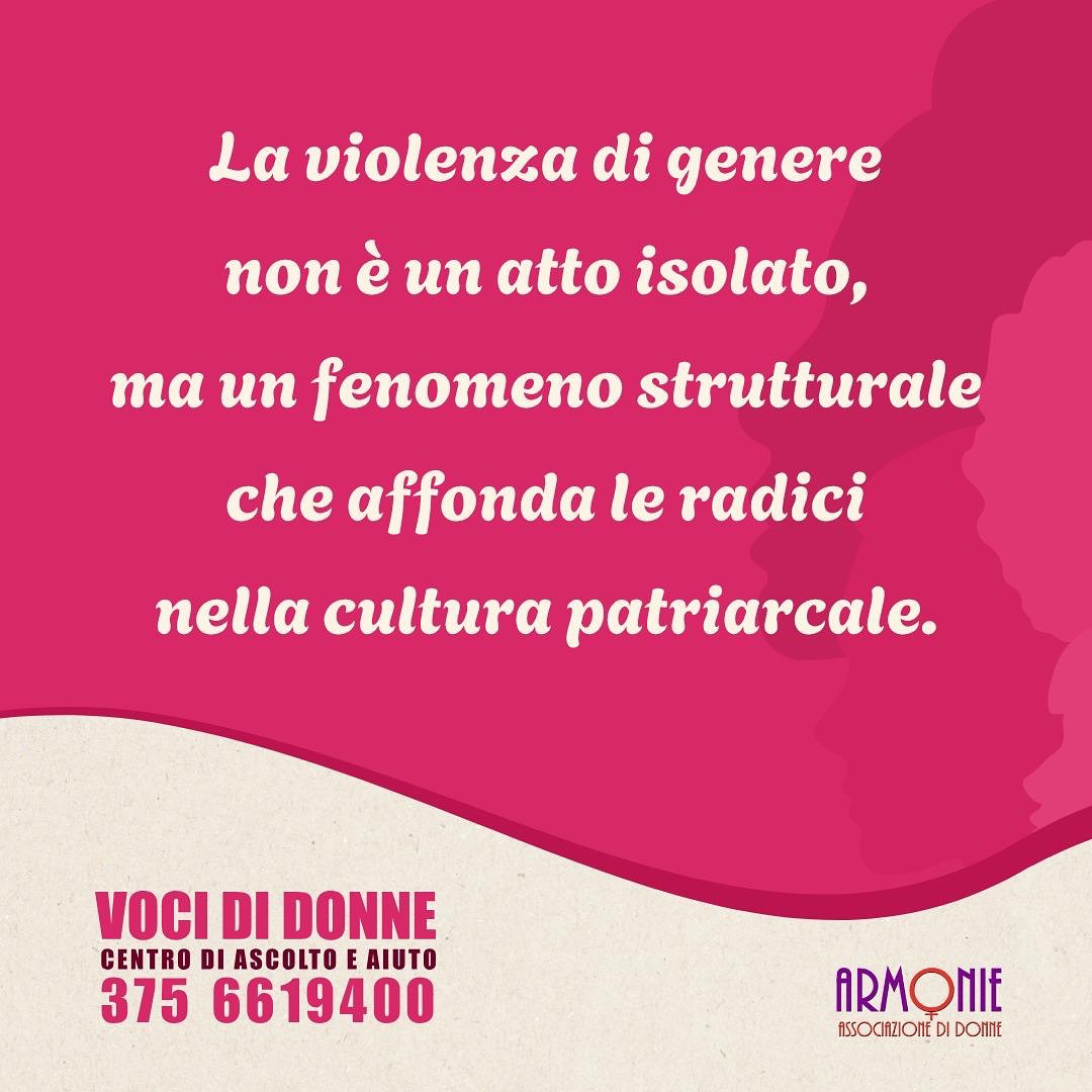 Siamo volontarie di Voci di donne, un centro di aiuto e ascolto attivo il lunedì e mercoledì dalle 16 alle 19 all’interno di Armonie APS.